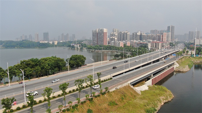 学院路(今湘北大道)提质改造工程是岳阳市交通建设大会战的重点工程,岳阳路桥作为交通建设大会战的主力军,先后承担了学院路(今湘北大道)提质改造1标、2标、3标、4标和5标等五个标段的施工任务,此次入选省优的2标工程造价16748万元,其控制性工程南湖大桥旧桥西侧紧邻重点文物保护单位三眼桥,旧桥爆破拆除重建是该项目实施的关键节点。2017年4月3日,项目正式开工建设,采取定向爆破反方式爆破成功完成旧桥拆除,新南湖大桥采用钢箱梁结构,主线桥长287米,宽25米。2018年2月1日南湖大桥暨全线正式竣工通车。