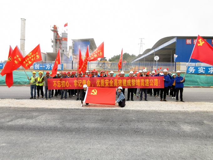 黎靖公司支部把开展“不忘初心、牢记使命”主题教育,与推动实现黎靖高速公路2019年12月20日通车目标相结合,支部班子组织项目公司全体党员、各参建单位班子成员和青年员工开展系列主题活动,通过在施工现场为先锋团队授旗鼓劲、重温入党誓词、瞻仰革命胜地、开展党性教育等形式,多角度推动主题教育深入开展,确保做与学深度融合,相互促进,发现问题,整改问题。