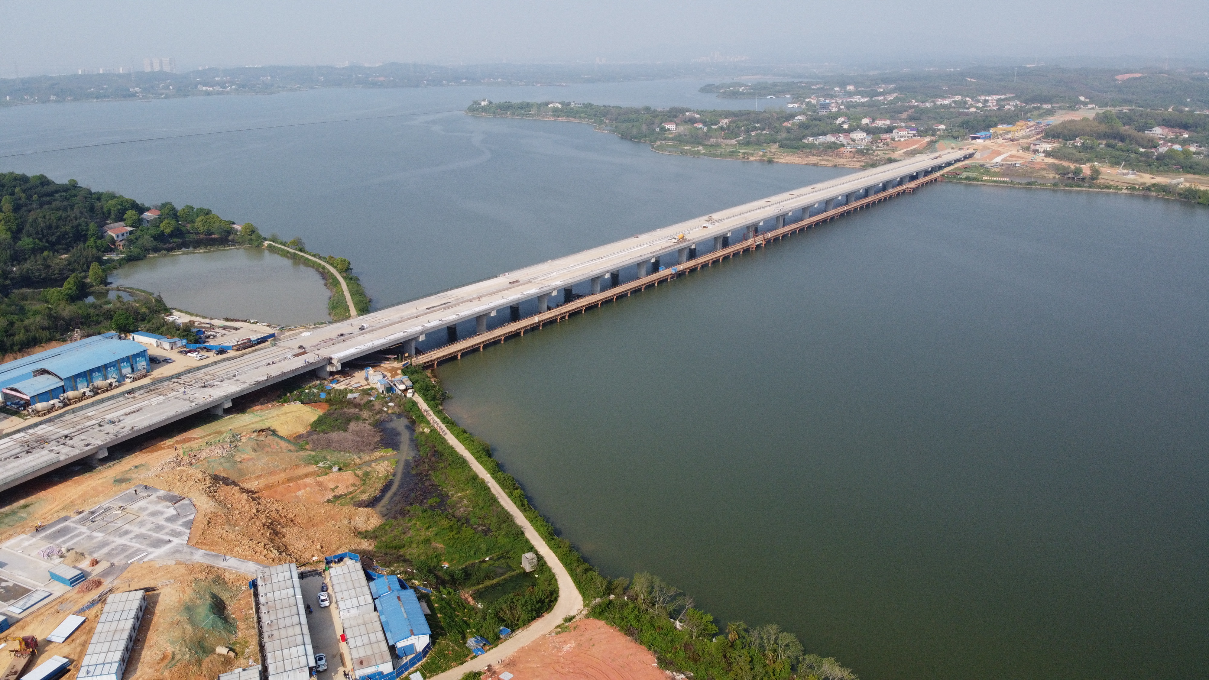 日前,岳阳路桥承建的北环线洛家山路建设工程控制性工程芭蕉湖大桥已完成桥面铺装施工,实现全幅贯通,进入钢护栏等附属工程施工阶段。