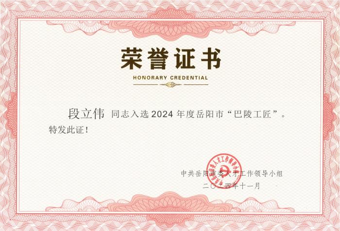 近日,岳阳市隆重举办2024年岳阳市人才(企业家)表彰联谊晚会,市领导为入选本土人才代表颁奖。岳阳路桥集团设计公司经理段立伟入选“巴陵工匠”。